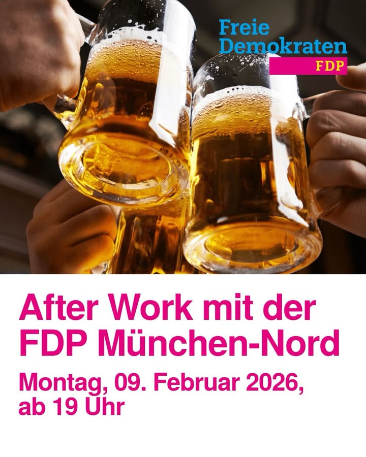 After-Work mit der FDP München-Nord 💛 🗓️ Montag, 09.02.2026 🕖 19:00 Uhr 📍 Gaststätte Scheidegger (Bauerstraße 16, 80796 München) Kommt gerne vorbei - diskutiert mit uns und lernt die FDP München-Nord kennen. Wir freuen uns auf euch! Mitglieder sowie Interessierte sind herzlich willkommen! 😊 #fdp #fdpmuenchennord #fdpmuenchen #politics #afterwork networking PolitischerStammtisch