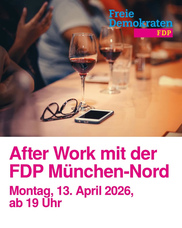 After-Work mit der FDP München-Nord 💛 🗓️ Montag, 13.04.2026 🕖 19:00 Uhr 📍 Gaststätte Scheidegger (Bauerstraße 16, 80796 München) Kommt gerne vorbei - diskutiert mit uns und lernt die FDP München-Nord kennen. Wir freuen uns auf euch! Mitglieder sowie Interessierte sind herzlich willkommen! 😊 #fdpmuenchen #afterwork #networking #PolitischerStammtisch